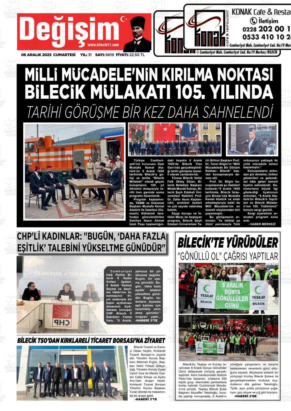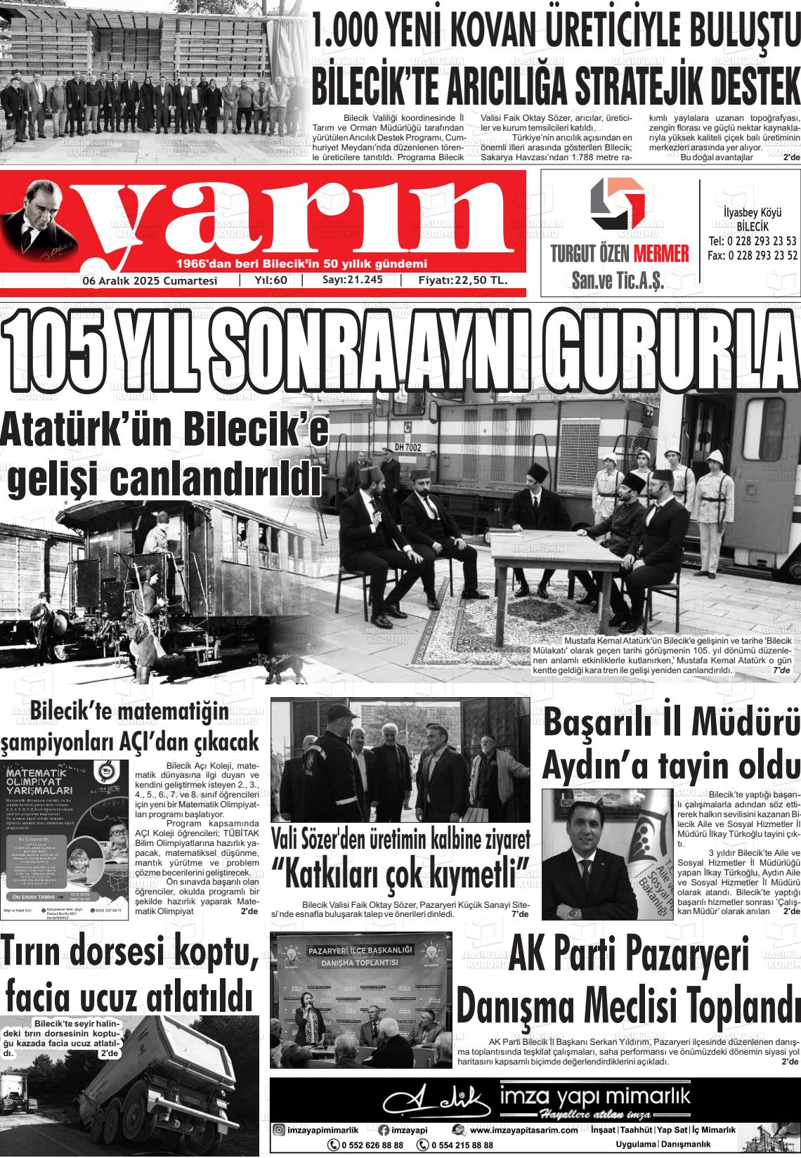 Bİlecİk Yerel Gazeteleri 06 Aralık 2025, Cumartesi Günü Manşeti