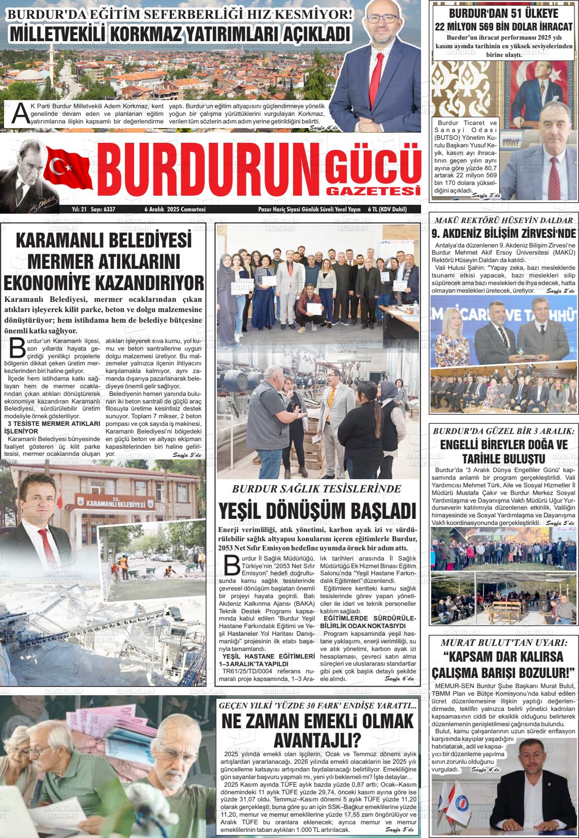 Burdur Yerel Gazeteleri 22 Ocak 2026, Perşembe Günü Manşeti