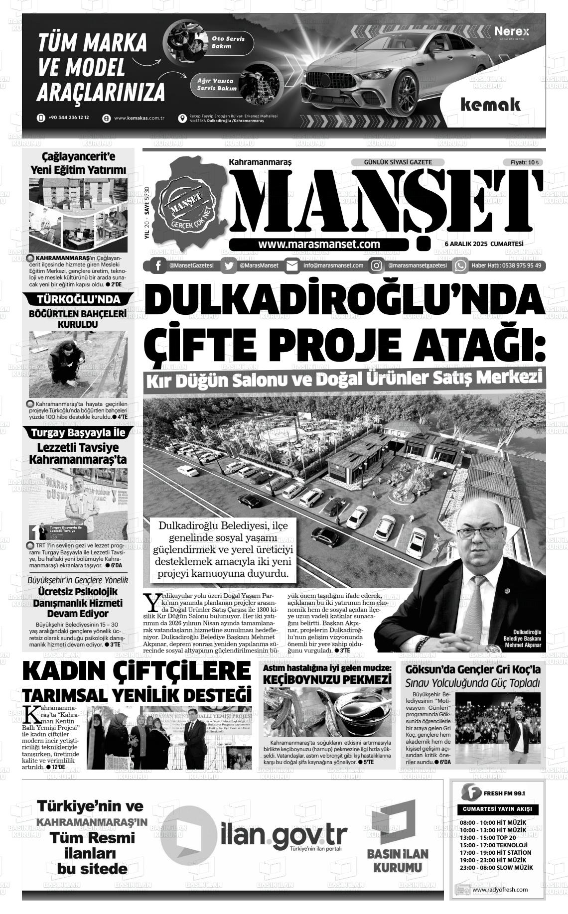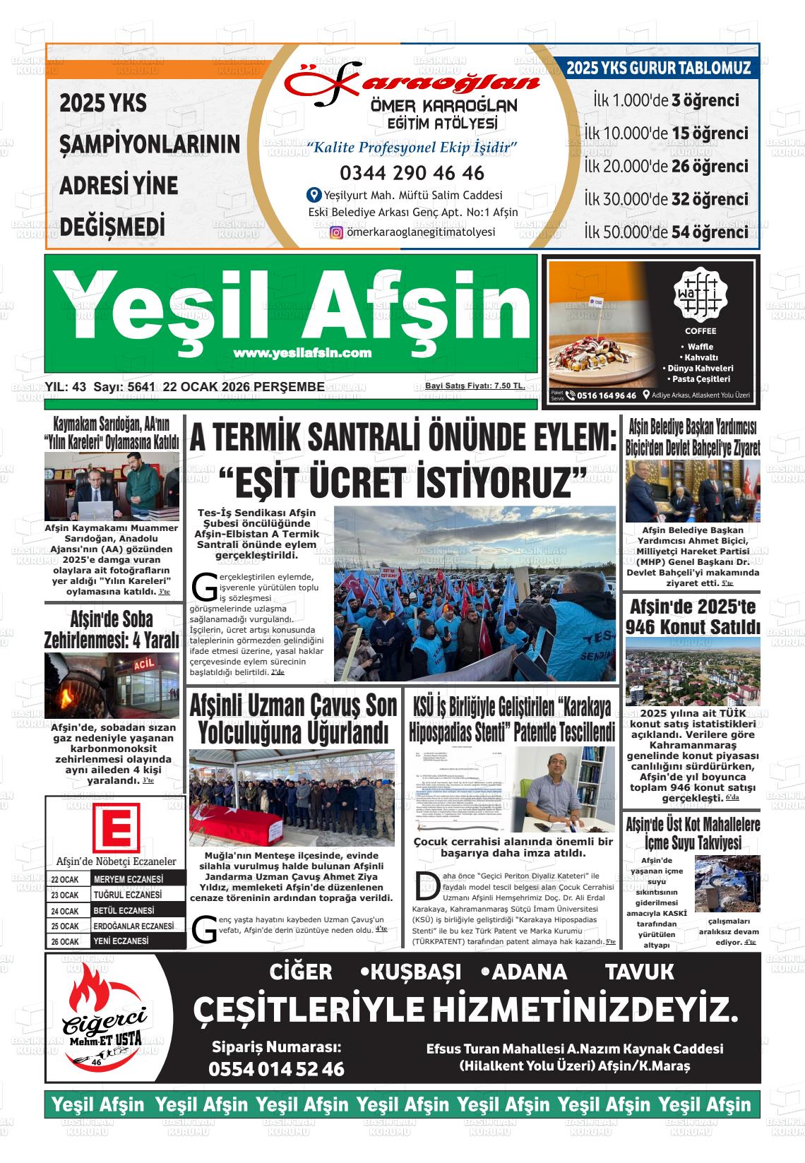 Kahramanmaraş Yerel Gazeteleri 22 Ocak 2026, Perşembe Günü Manşeti