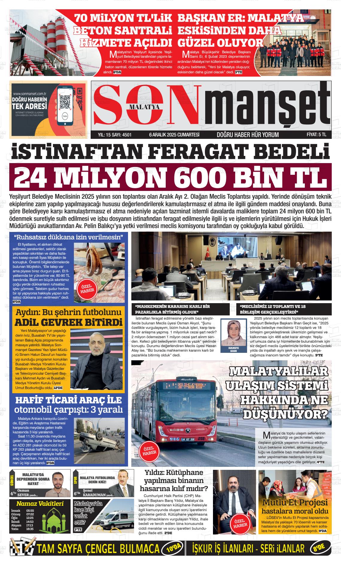 Malatya Yerel Gazeteleri 22 Ocak 2026, Perşembe Günü Manşeti