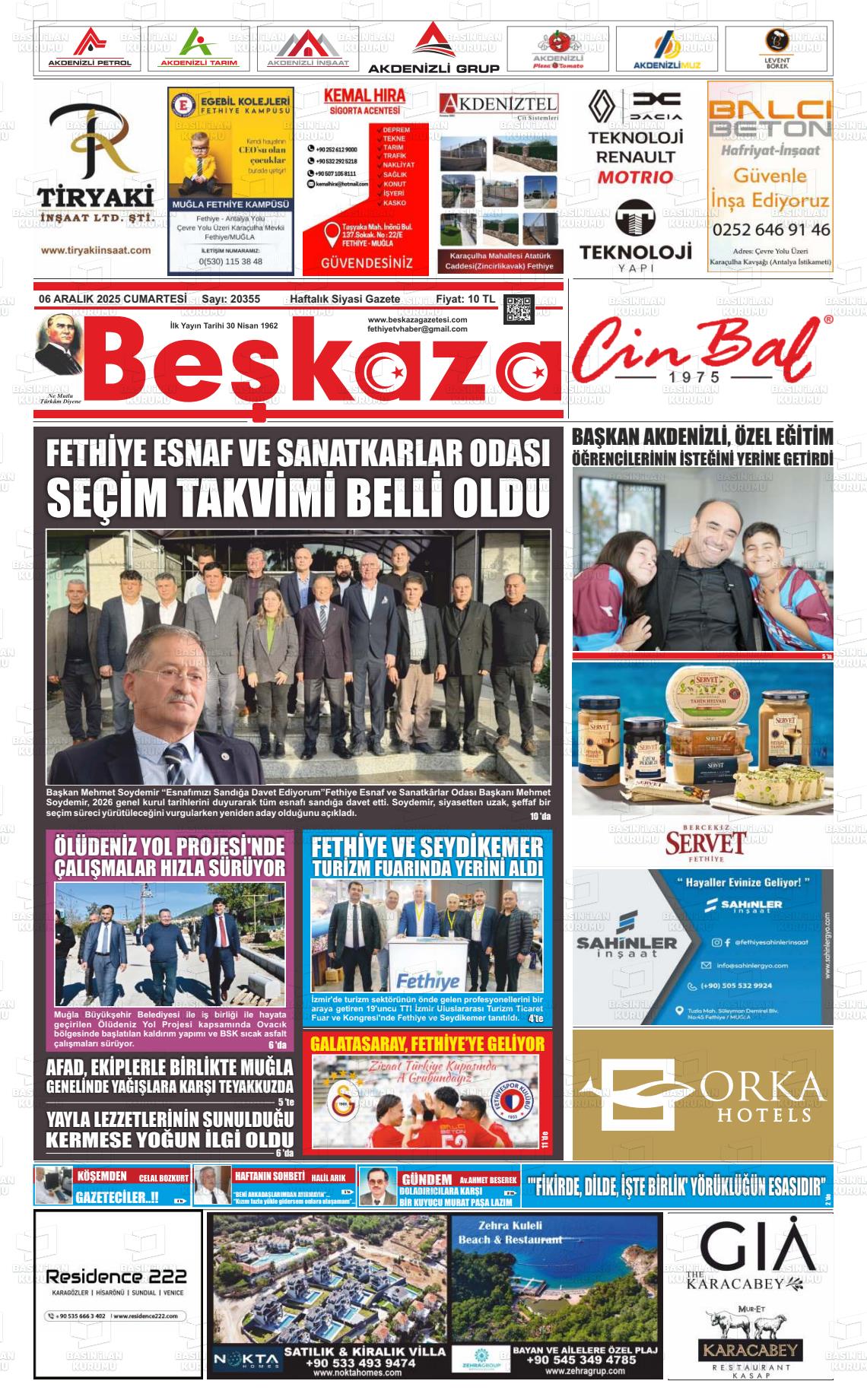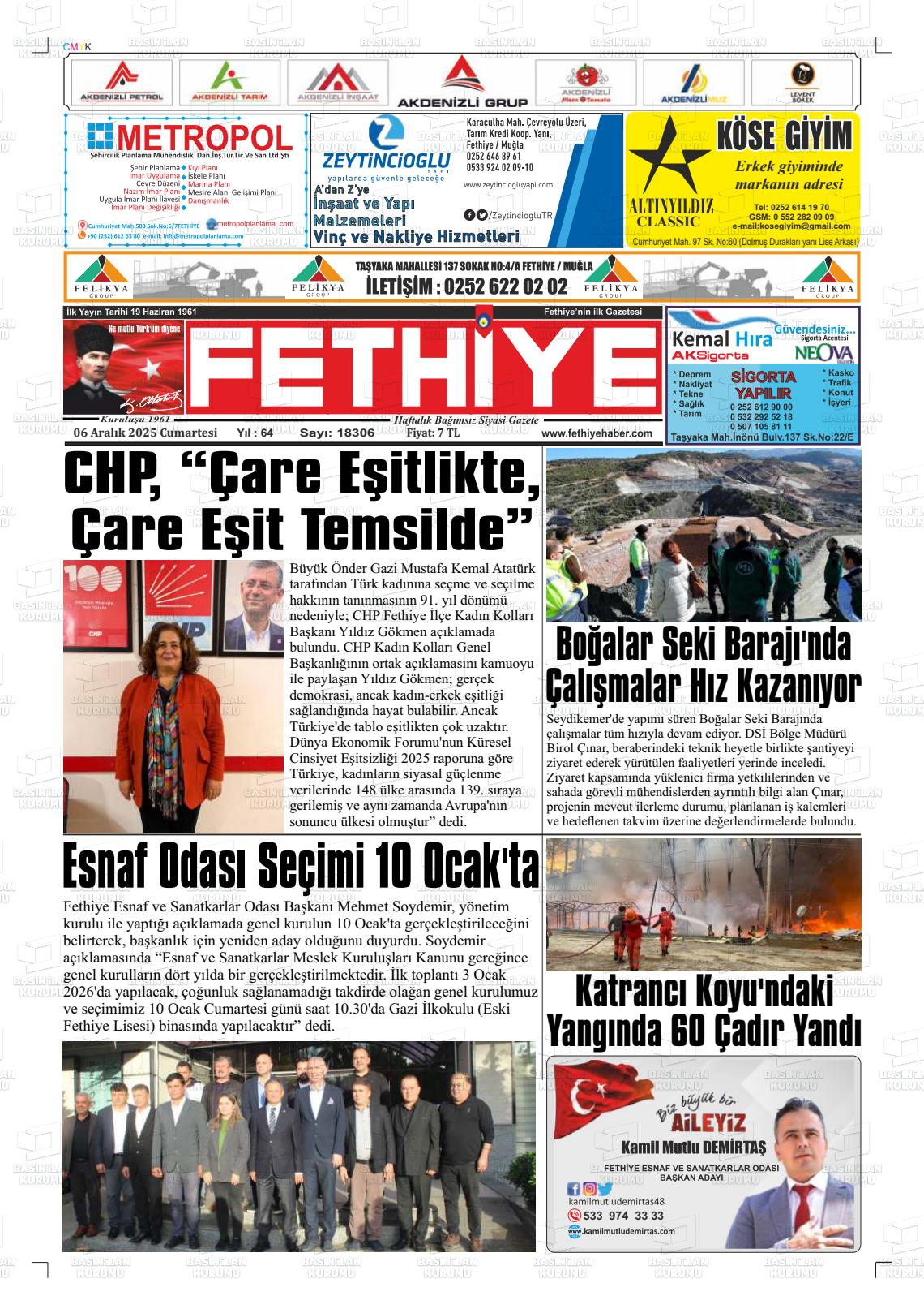Muğla Yerel Gazeteleri 06 Aralık 2025, Cumartesi Günü Manşeti