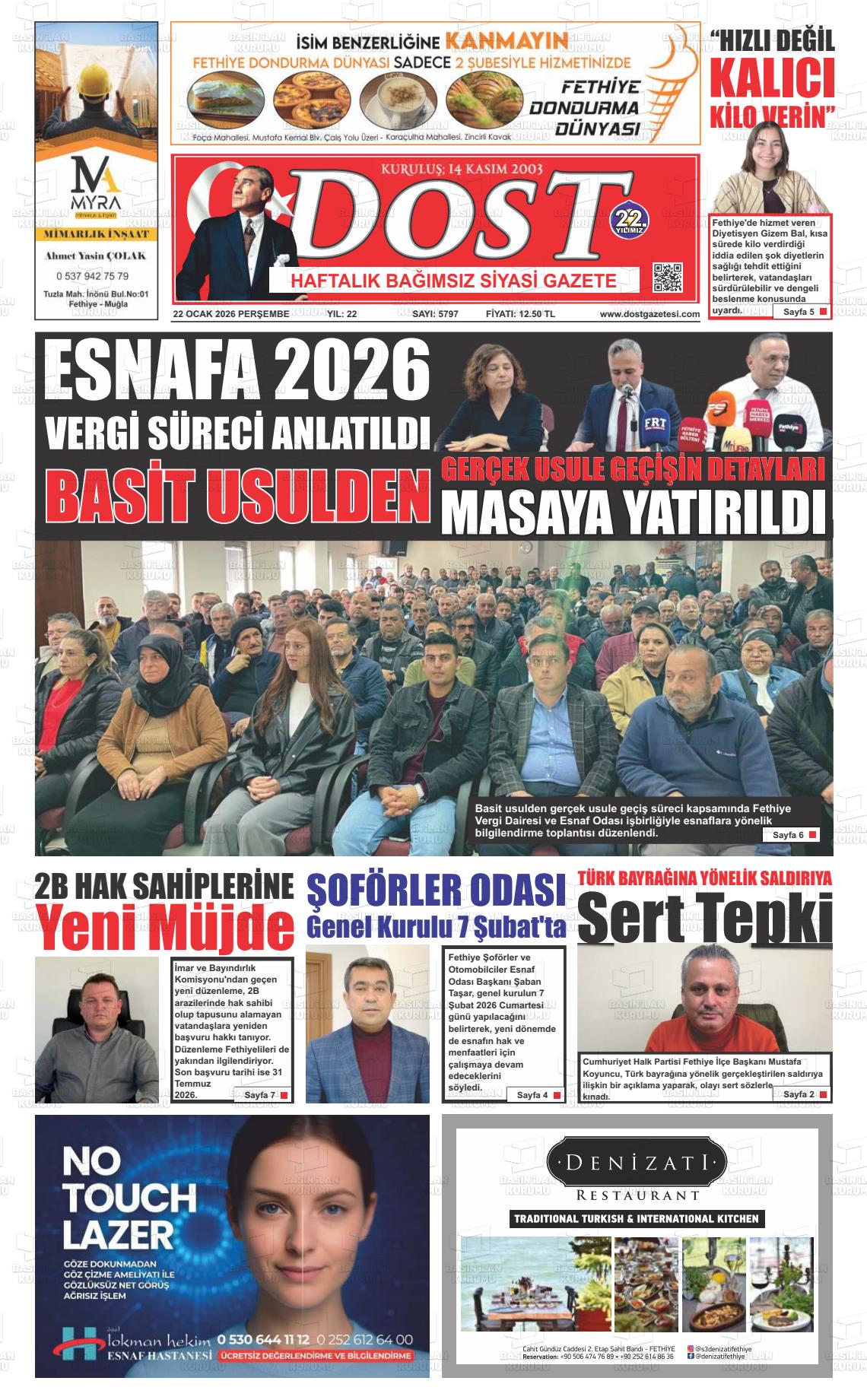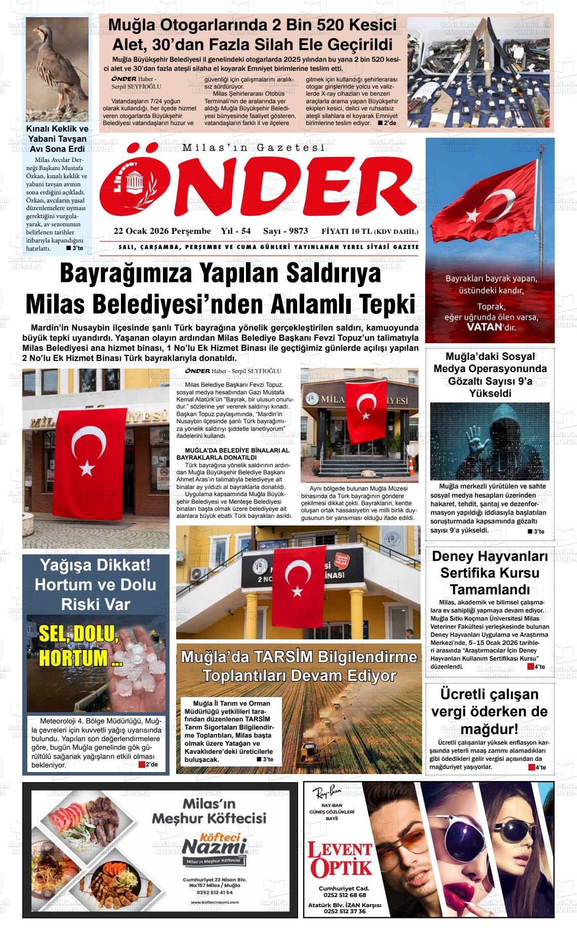 22 Ocak 2026, Perşembe Günü Manşeti
