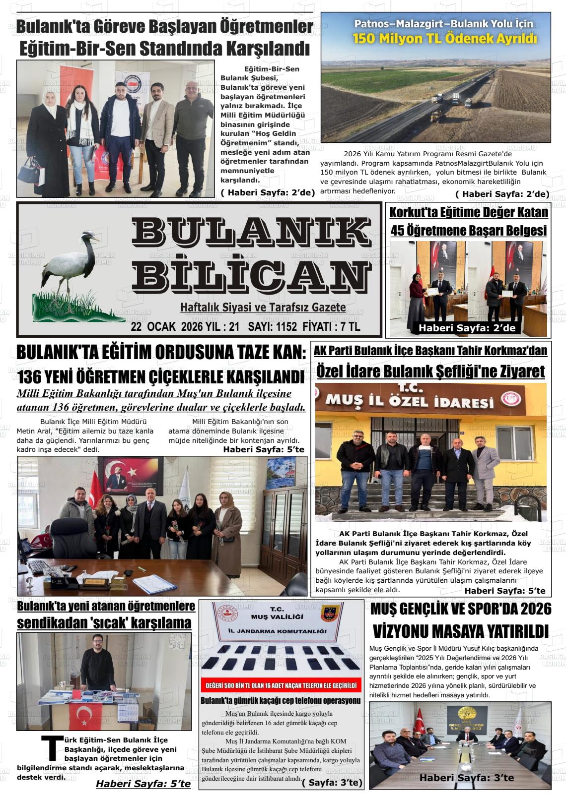 22 Ocak 2026, Perşembe Günü Manşeti
